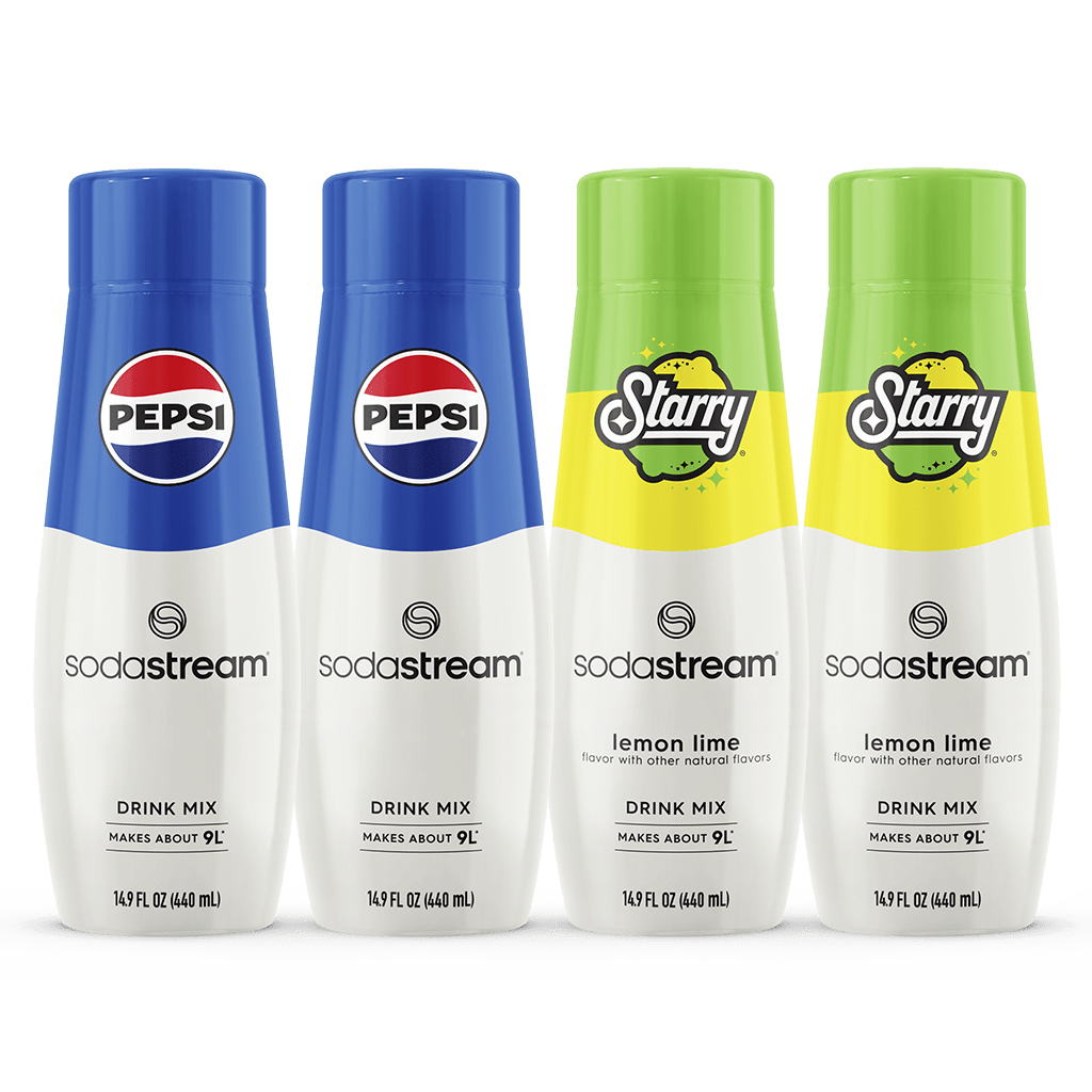 NEW! Your favorite cola and lemon lime flavored beverages. made by you. Now you can turn SodaStream sparkling water into Pepsi? and Starry? in seconds with our new beverage mixes.